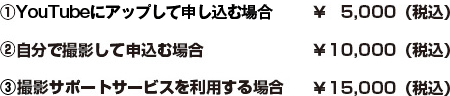 ①Youtubeにアップして申込む場合 ¥ 5,000(税込)